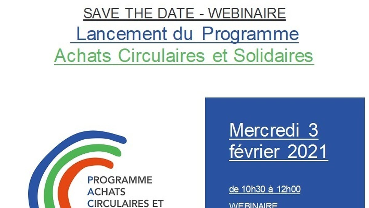 Lancement du Programme Achats Circulaires et Solidaires Webinaire le 3 février de 10h30 à 12h